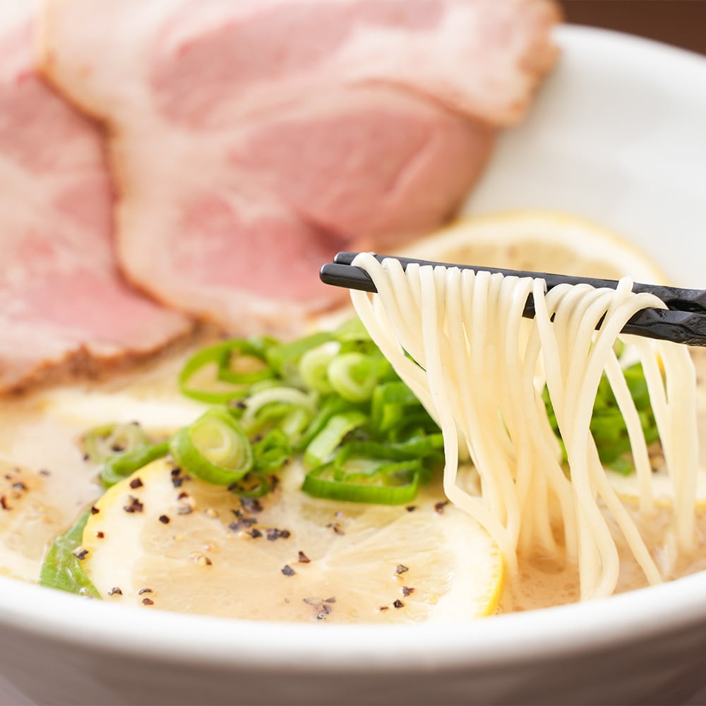 ※レモンとんこつラーメンはお好みに合わせてネギ、ブラックペッパー等を添えますと一層おいしく召し上がれます。とんこつラーメンはチャーシュー、ネギ、のり、煮玉子などがおすすめです。